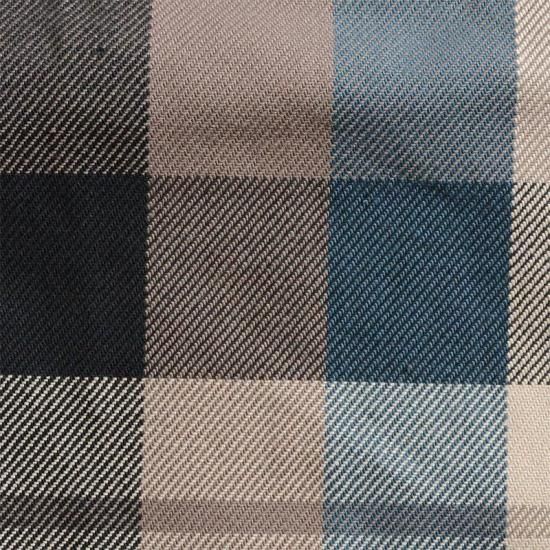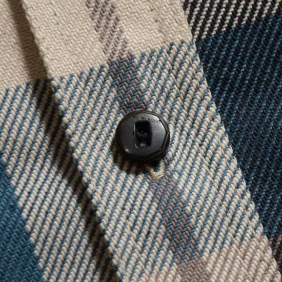 兵庫県西脇市で製造した太い織り糸によるマルチチェックのヘビーネル素材。かなりの綿量を使用することからコットンメルトンと呼ぶ極厚素材は重さにして13ozもある。
